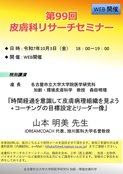 2025年10月3日(金) 山本明美先生(iDREAMCOACH 代表、旭川医科大学名誉教授)によるセミナーのお知らせで… 詳しく見る